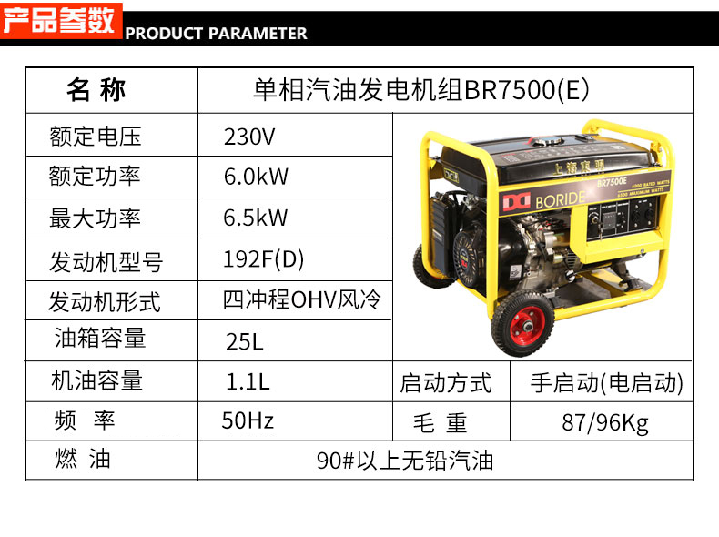 單相6kW小型汽油發(fā)電機組 BR7500(E)